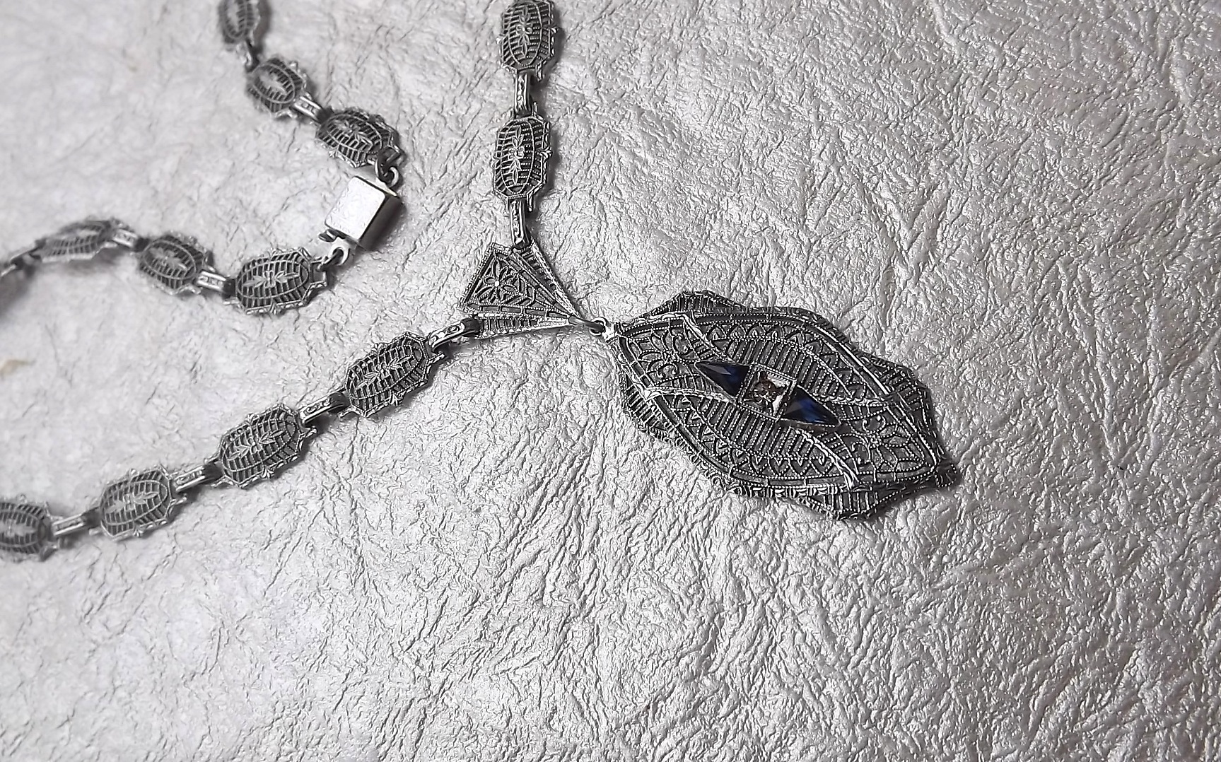 art deco lavalier Add to Cart Art Deco Lavalier Necklace Blue Faceted Glass Pendant Rondelle Beads MSRP: Was: Now: $85.00 ART DECO CZECH LAVALIER NECKLACE FACETED BLUE GLASS BEADS CLEAR RONDELLE SPACER BEADS LARGE PE…