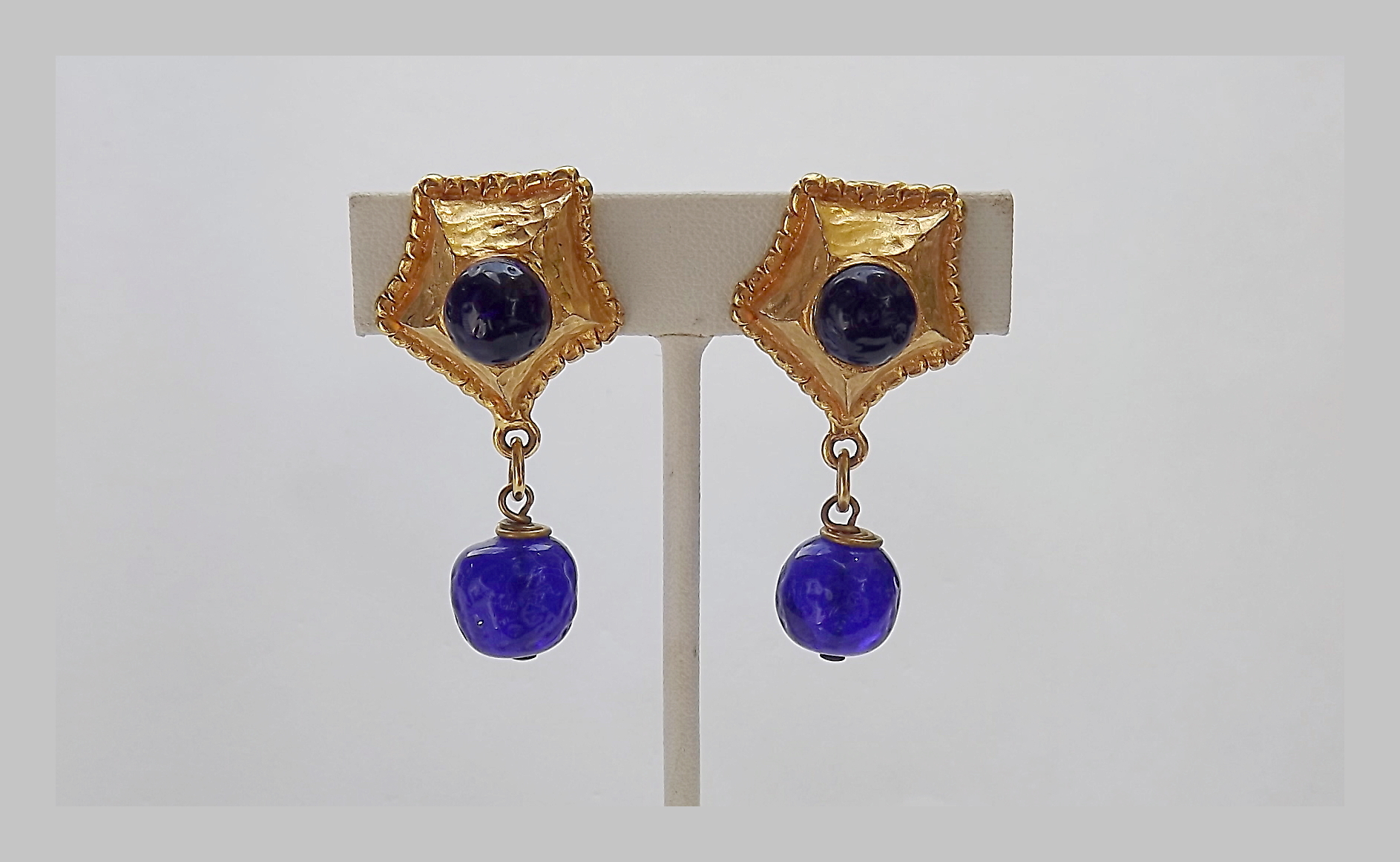 Add to Cart Poured Glass Earrings By LIZ CLAIBORNE Foiled Gripoix Avant Garde Organic Design MSRP: Was: Now: $49.00 These unique earrings by Liz Claiborne are an avant garde, runway couture, statement pair tha…
