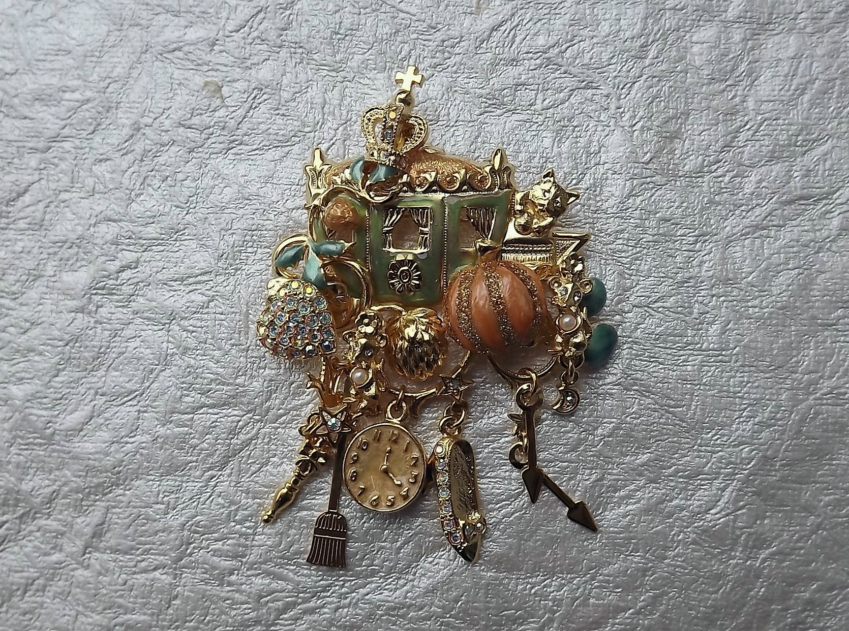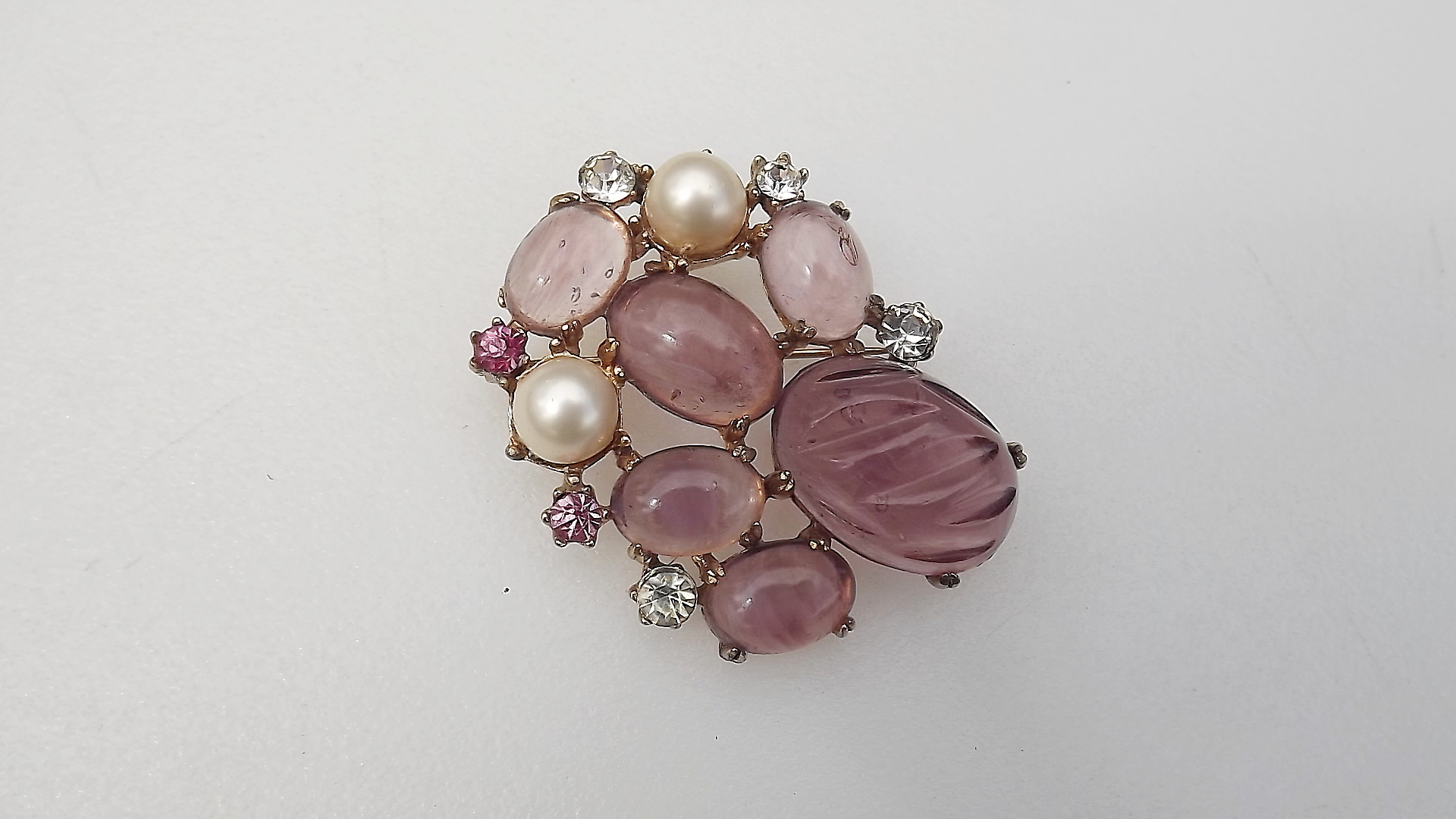 Add to Cart Vintage Art Deco Signed Catherine Popesco France Enameled French Brooch With Crystals MSRP: Was: Now: $35.00 Beautiful vintage Catherine Popesco brooch. Antique silvery gold finish over a silver base and Swaro…