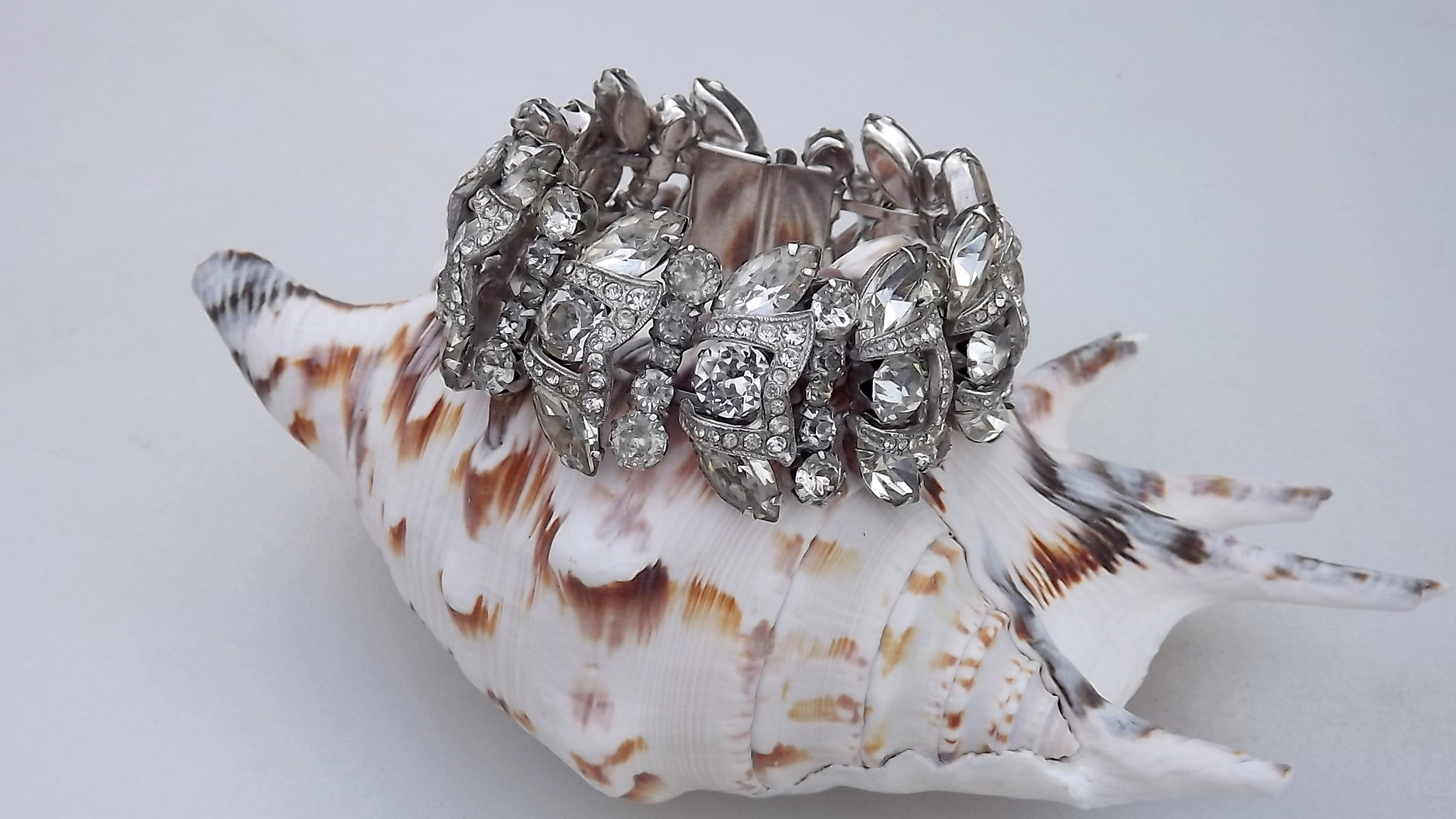 Add to Cart Gorgeous Vintage Grapes Cluster Fur Clip Blue Moonglow Stones Pave Rhinestones Silver Rhodium Old Costume Jewelry MSRP: Was: Now: $78.00 Big, beautiful, vintage, fur clip, features blue moon glow beads/stones, silver rhodium plated metal…