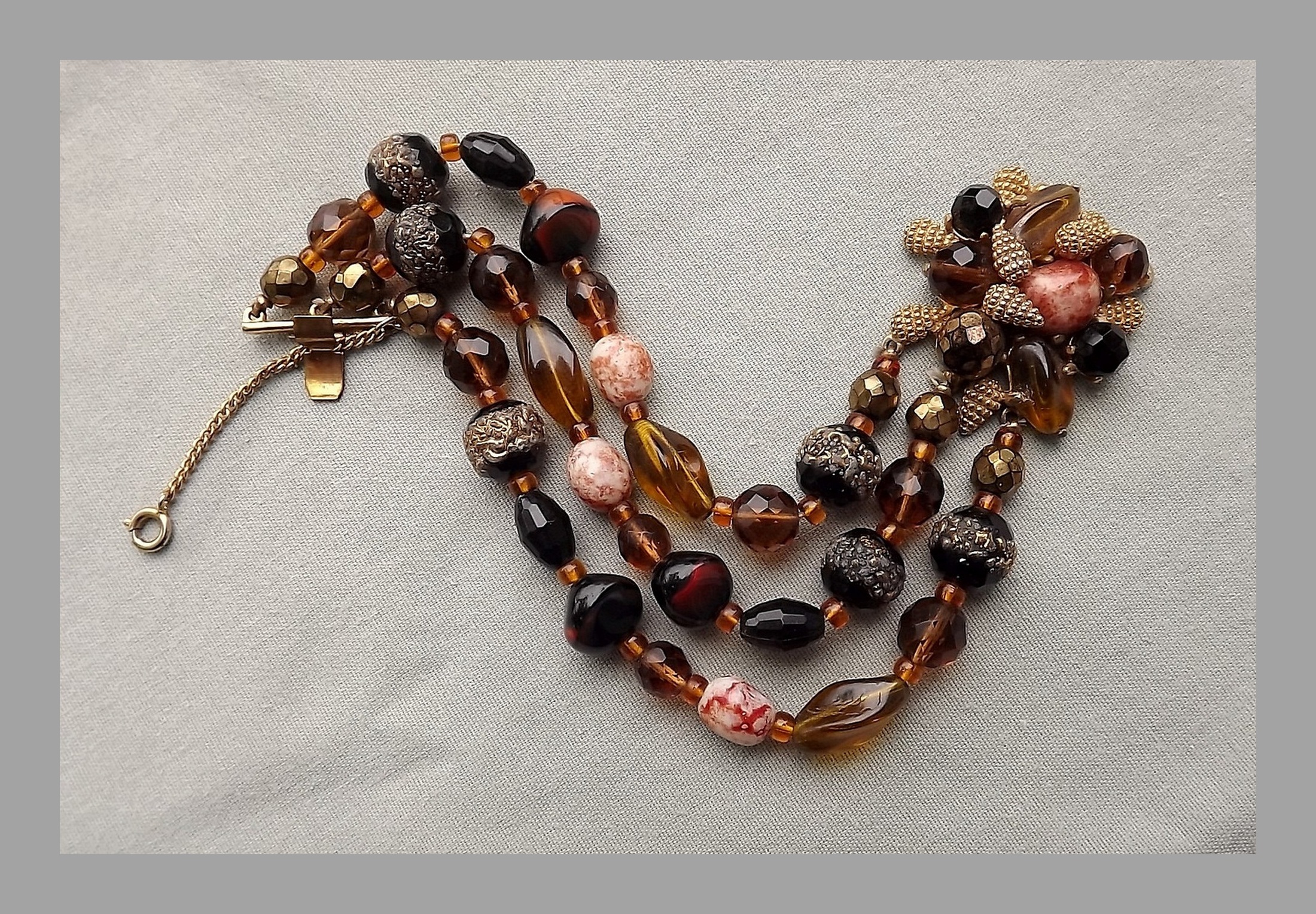 Schiaparelli Gorgeous Schiaparelli Bracelet Iridescent Lava & Poured Glass + Fancy AB Glass Beads Autumn Colors 3 Strand Unsigned MSRP: Was: Now: $195.00 Schiaparelli Bracelet - Unsigned "When identifying Costume Jewelry by Schiaparelli look for C…