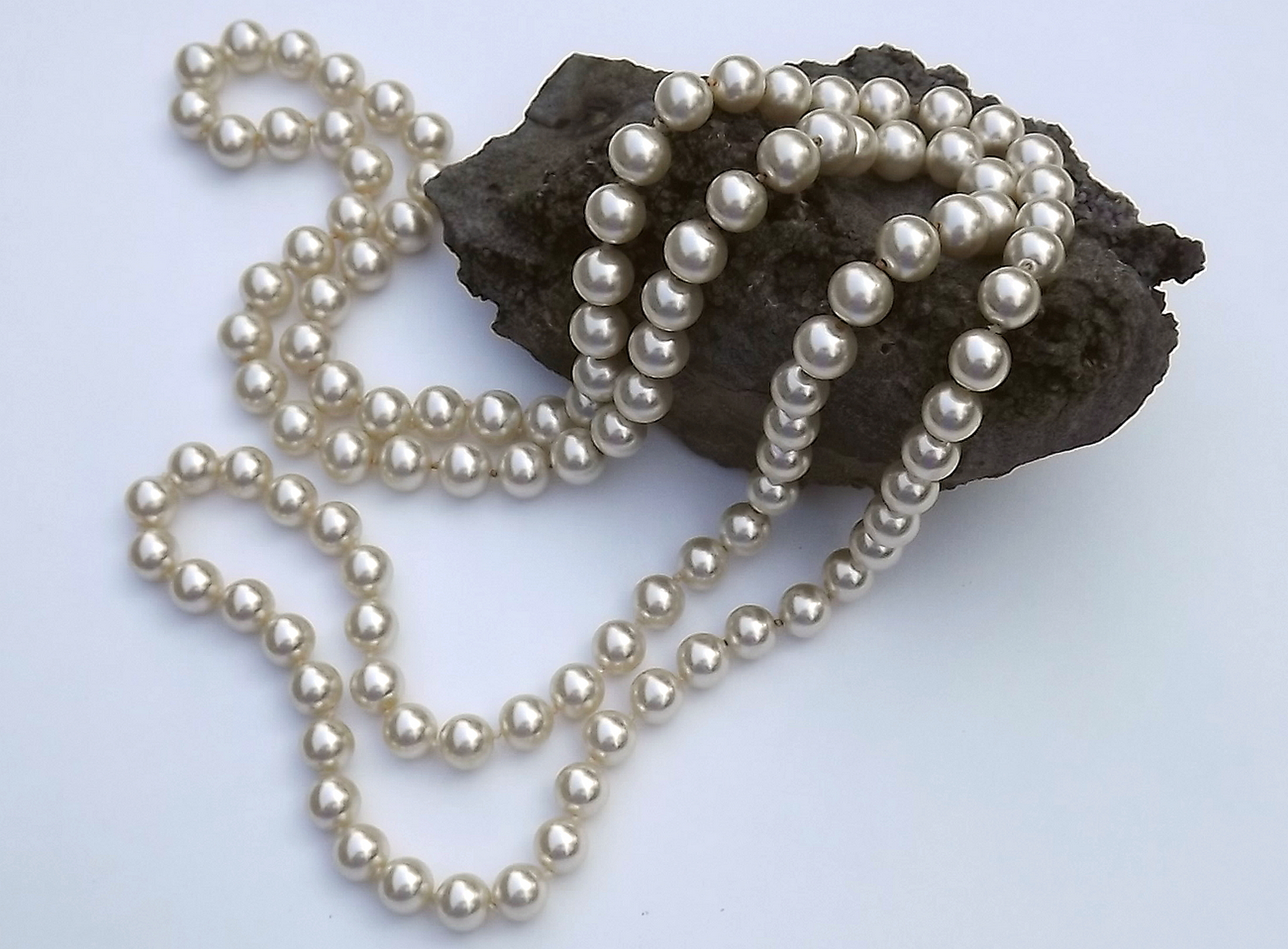 Big Pearls Add to Cart Vintage Huge Caged Faux Pearl Beads Necklace Runway Statement Fabulous Unique MSRP: Was: Now: $45.00 This unique necklace features spectacular, huge, white, faux pearls, with wired metal around each on…